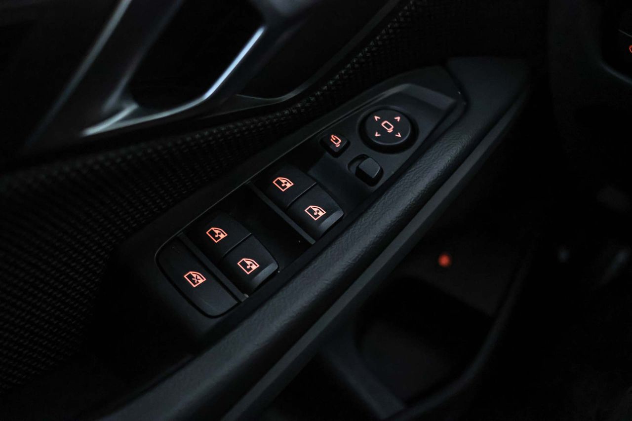 Retrovisor interior con oscurecimiento progresivo automático Retrovisor exterior del conductor en color combinado con carrocería con ajuste eléctrico desempañable con antideslumbrante automático y intermitente integrado, retrovisor exterior del acompañante en color combinado con carrocería con ajuste eléctrico desempañable con ajuste hacia el suelo en marcha atrás automático y intermitente integrado Retrovisores plegables Luneta trasera fija Limpiaparabrisas delantero con sensor de lluvia Elevalunas eléctricos delanteros y traseros con dos de ellos de un solo toque